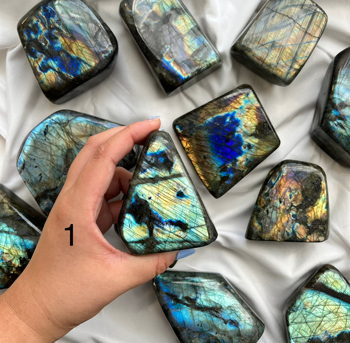 Blue labradorite encapsulates the natural world. Grounding us in the natural beauty this planet has to offer, with blue hues and flashes of color that remind us of the ocean and blue sky.