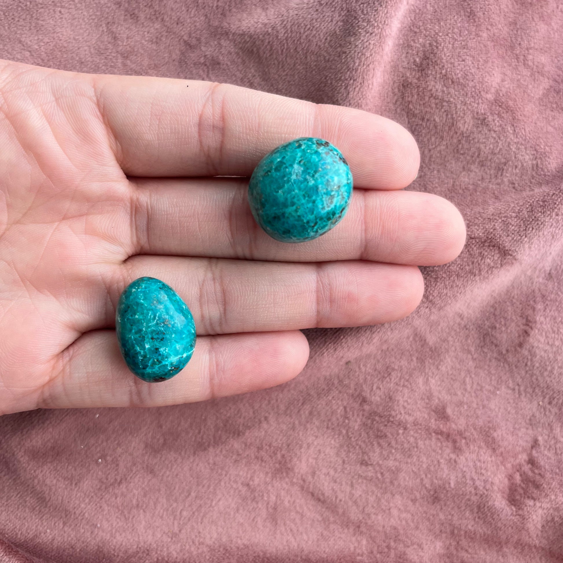 Chrysocolla's enchanting blue and green colors are key to embracing emotional balance and tranquility. One order comes with one intuitively selected piece from the chosen size category.