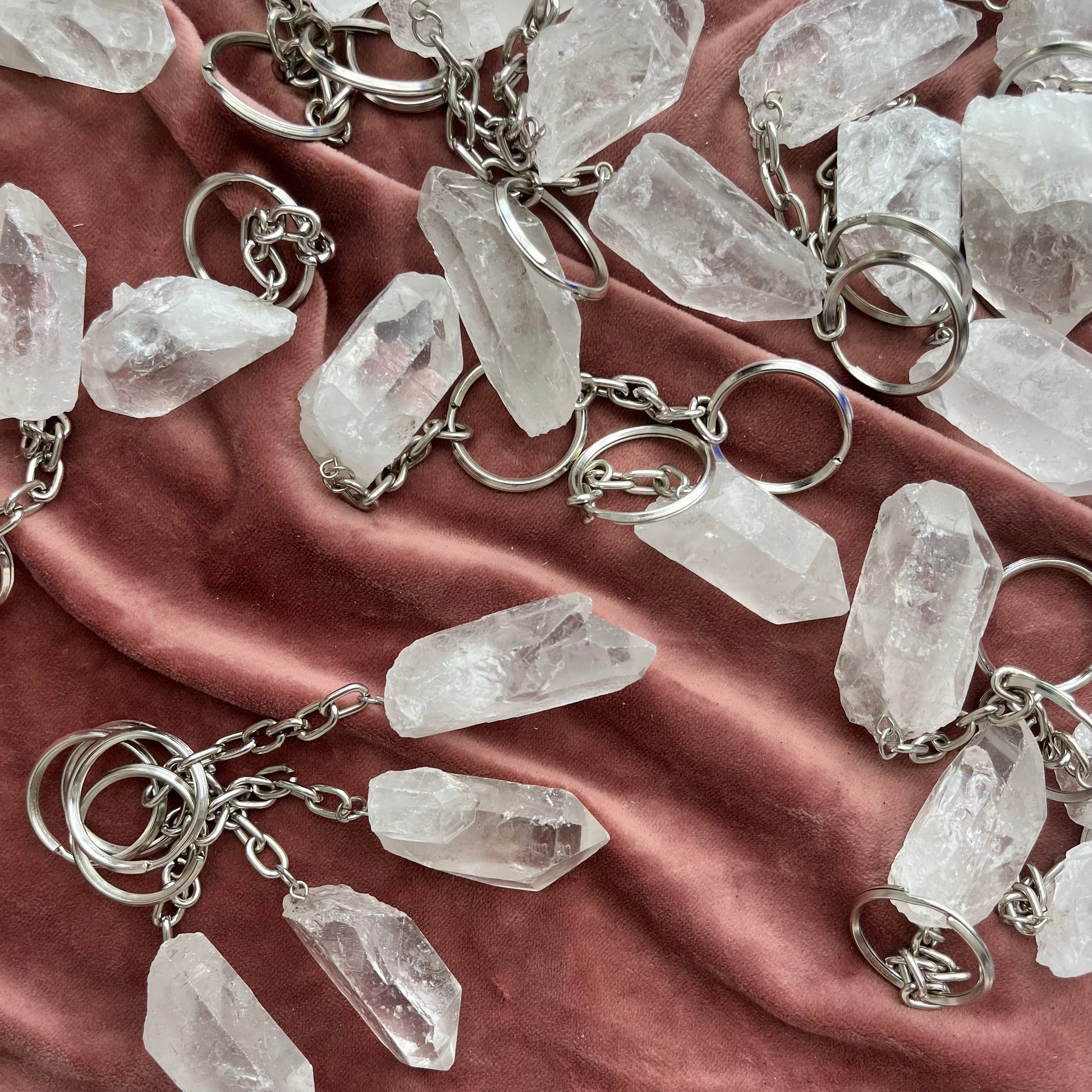 Bring the energy of clear quartz with you everywhere with these clear quartz key chains!