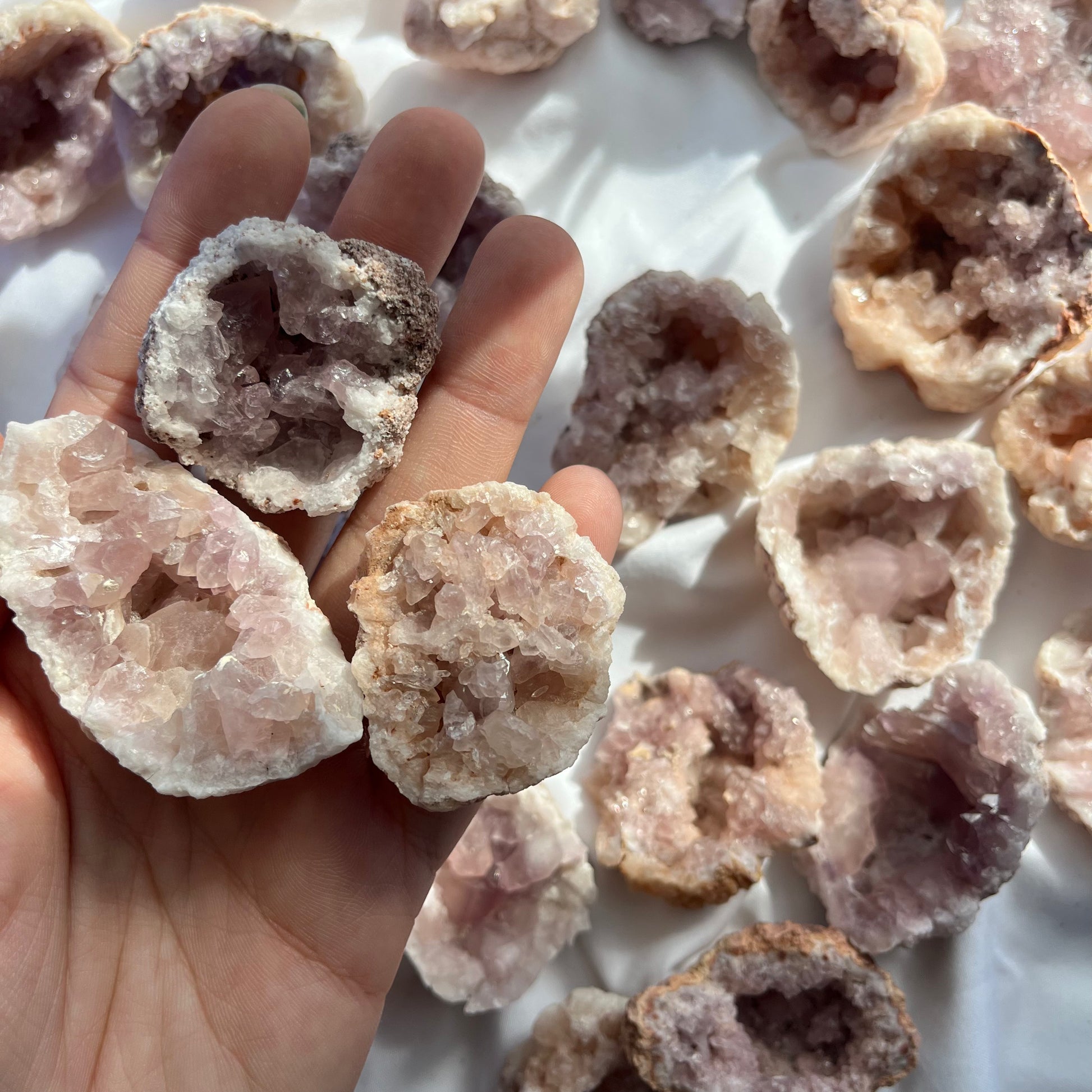 These mini pink amethyst geodes carry a soothing gentle energy bringing you a feelings of calm and balance in your life. Perfect additions to personal altars, meditation, or everyday use.