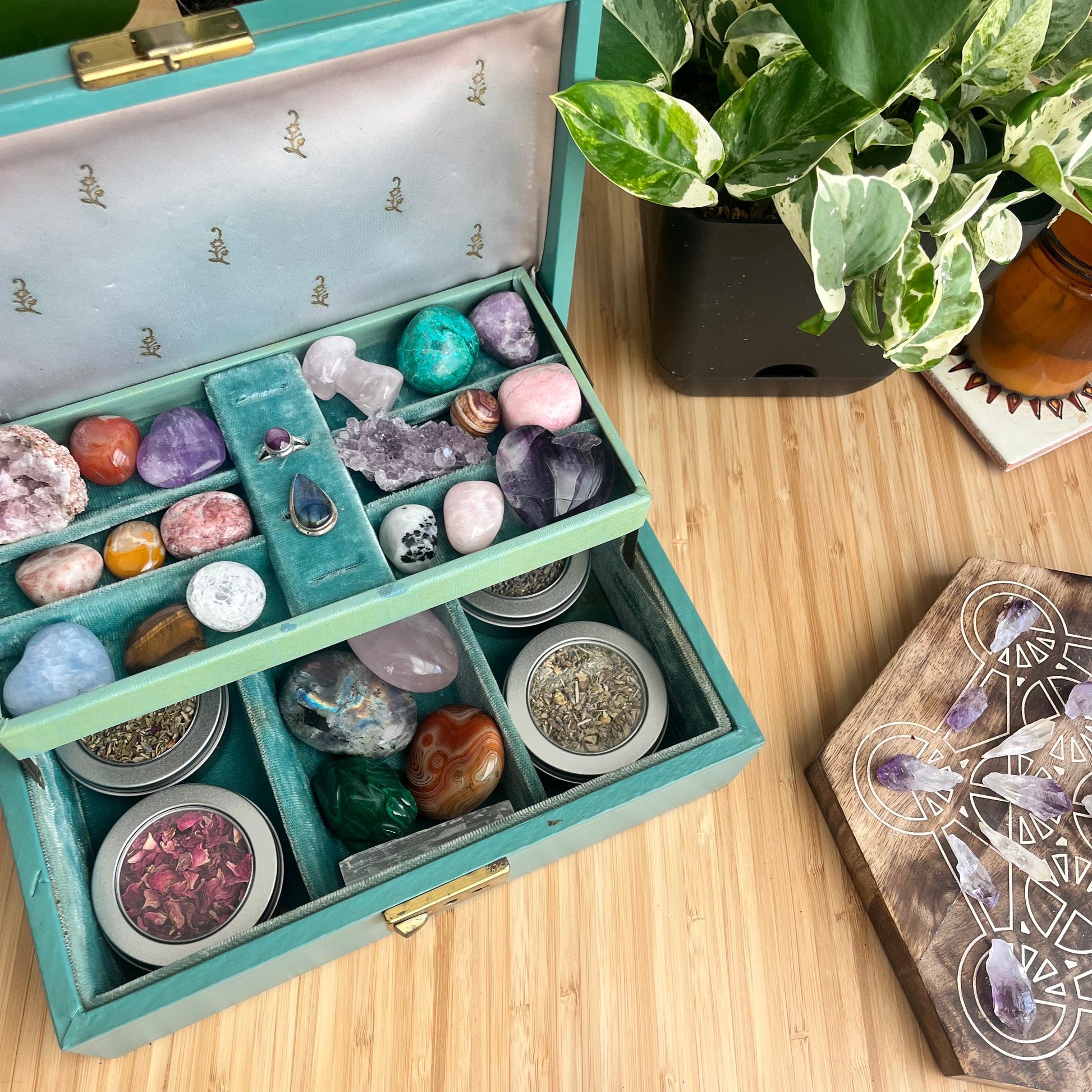 Sometimes things are better in pairs. A mirror image of one another this pair is perfect together or all on their own! Filled with crystals, herbs and jewelry these bundles offer a magical look into Mother Earths offerings.